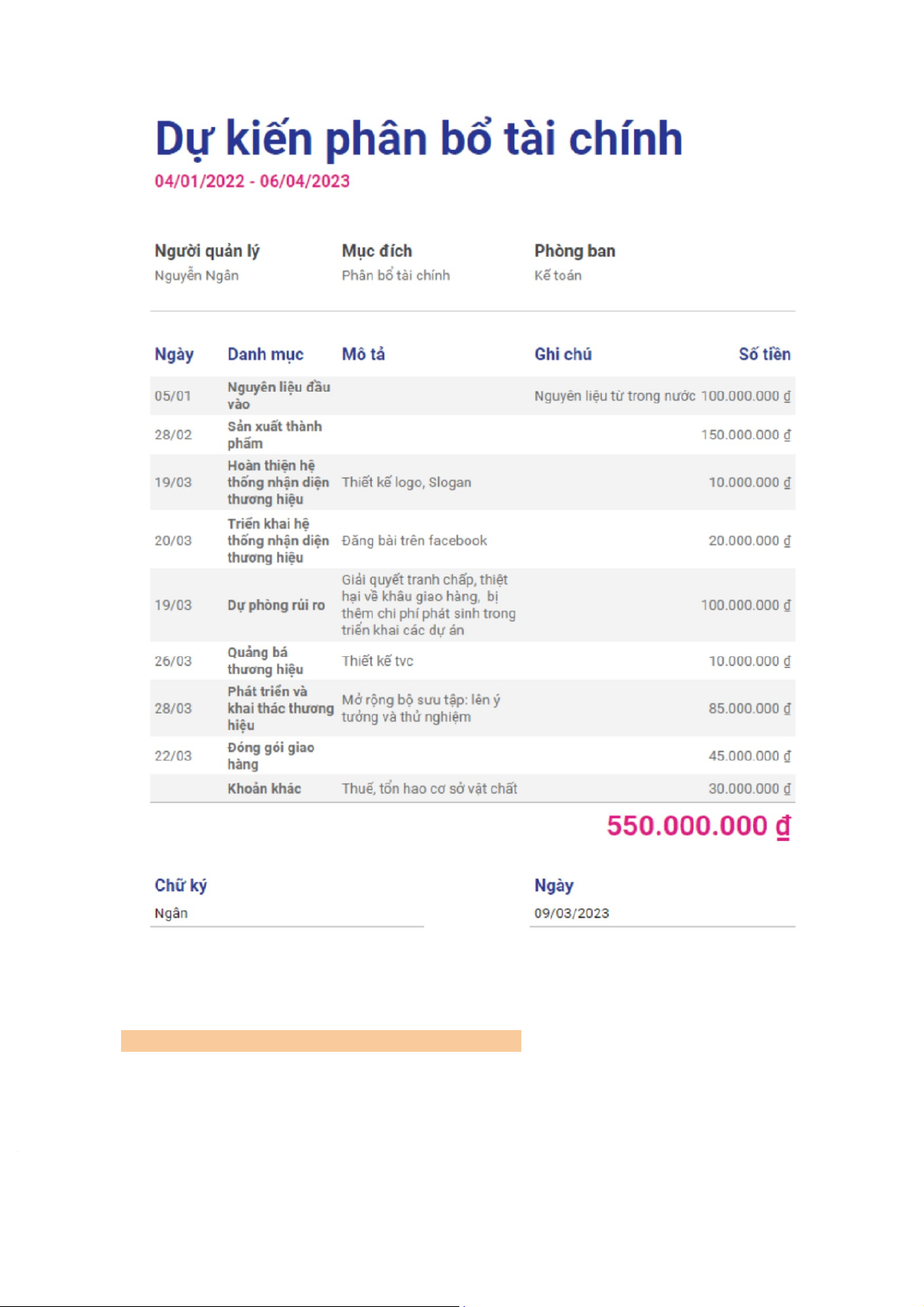 b) Phân bổ tài chính dự kiến 17