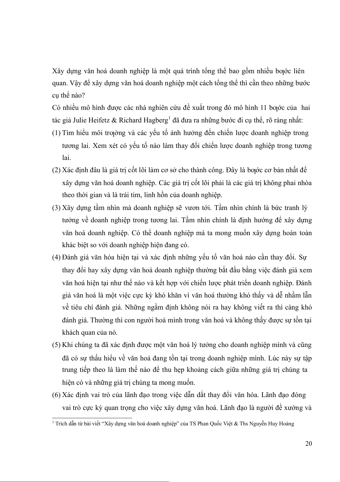 1 Trích dẫn từ bài viết “Xây dựng văn hoá doanh nghiệp” của TS Phan Quốc Việt & Ths Nguyễn Huy Hoàng 20