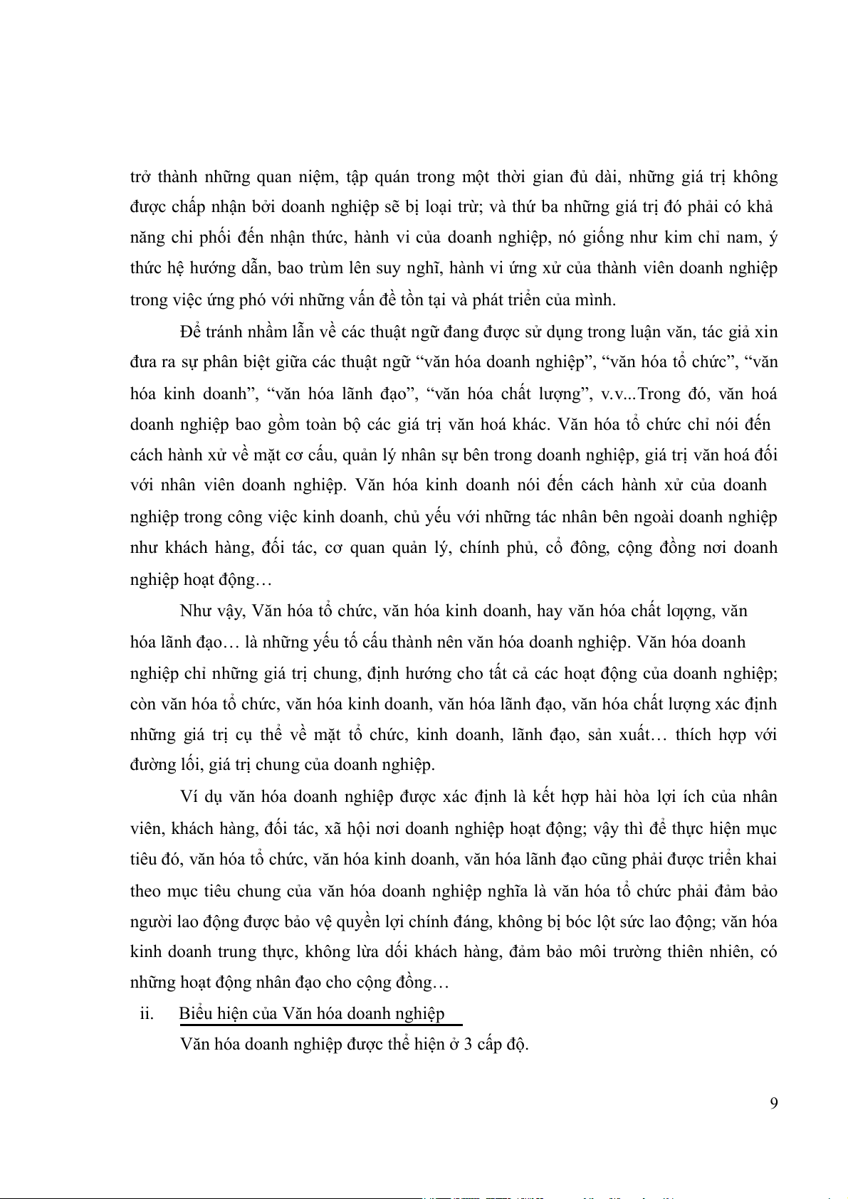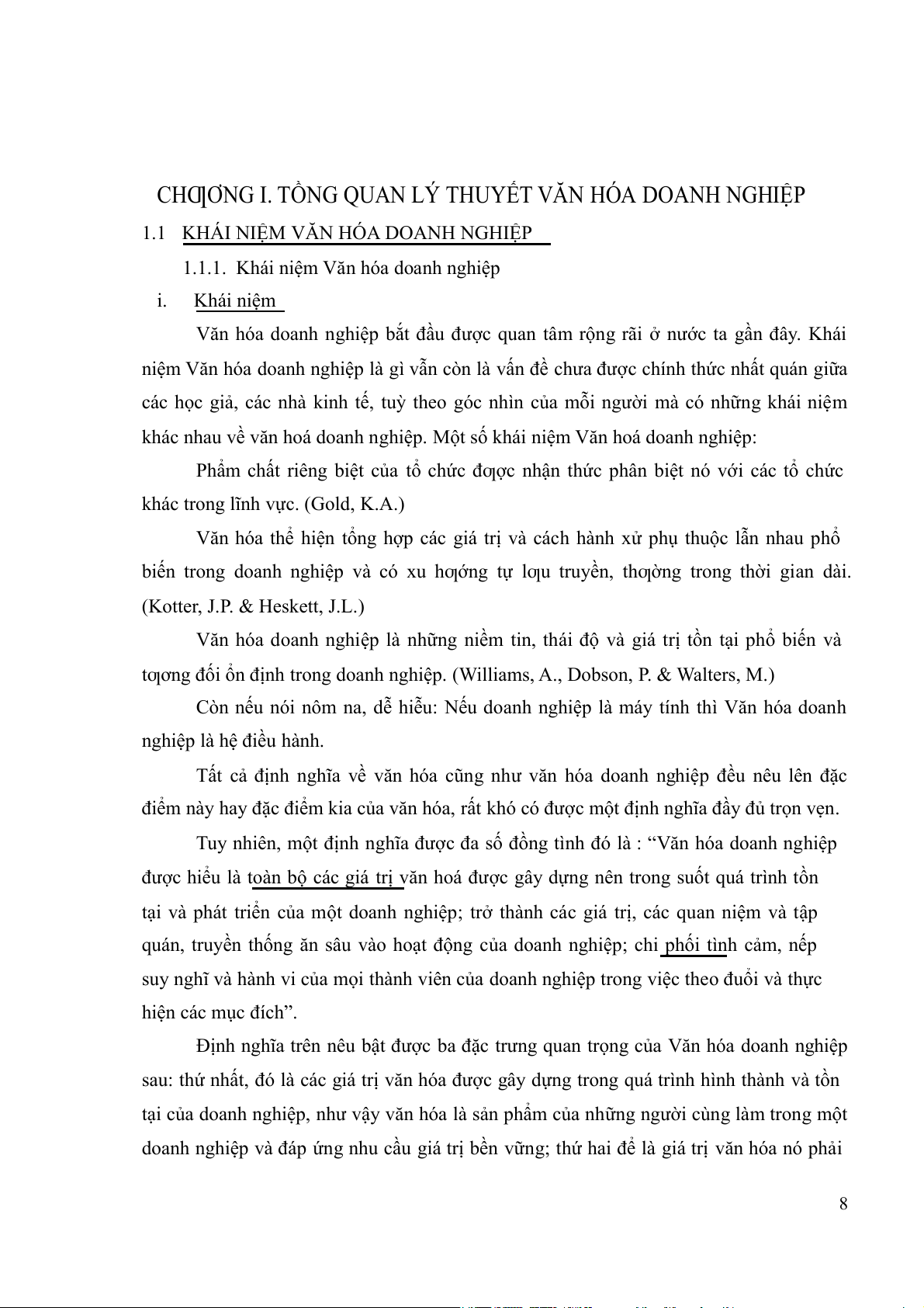 CHƢƠNG I. TỒNG QUAN LÝ THUYẾT VĂN HÓA DOANH NGHIỆP ....................... 8