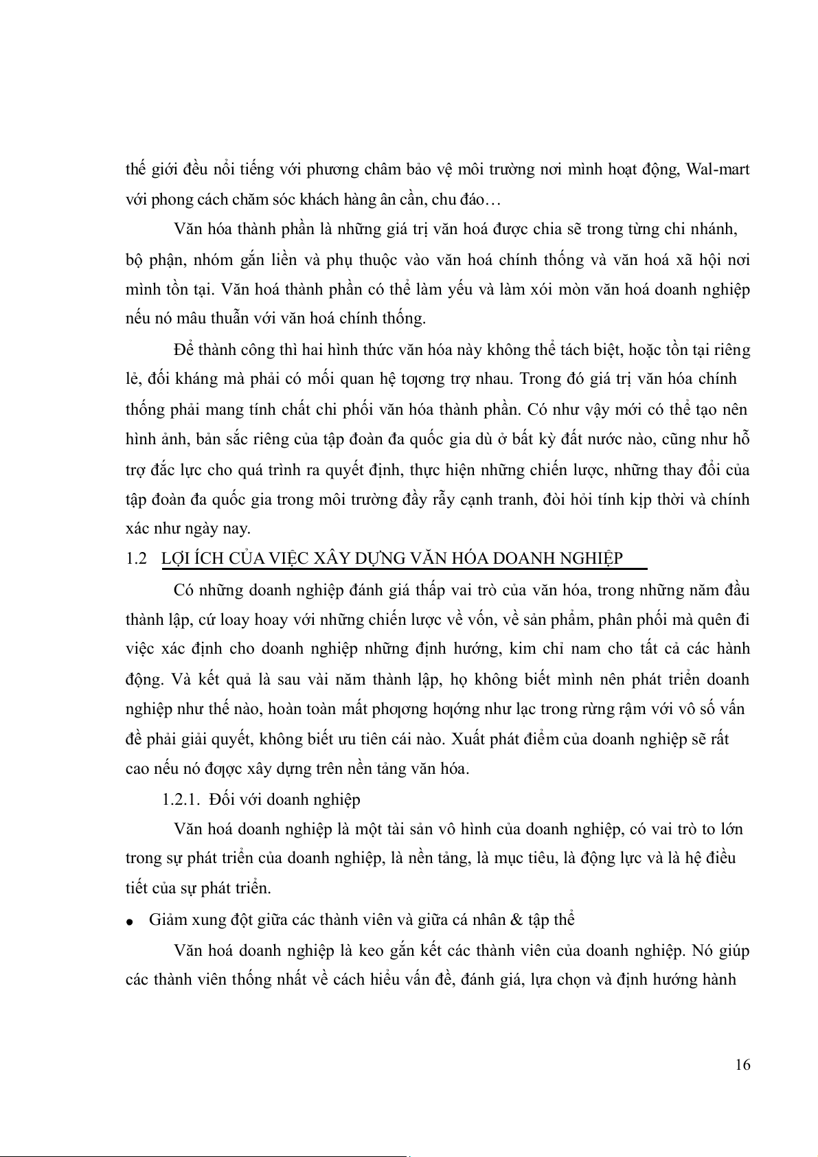 1.2 LỢI ÍCH CỦA VIỆC XÂY DỰNG VĂN HÓA DOANH NGHIỆP .......... 16