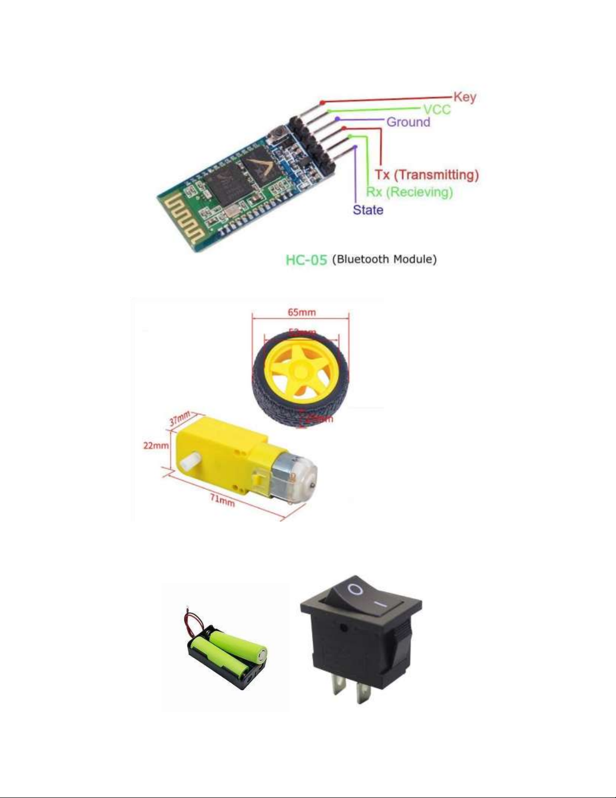 - Module điều khiển động cơ L298N - Module bluetooth HC-05 lOMoAR cPSD| 59735516 - Motor DC 3V-6V và bánh xe