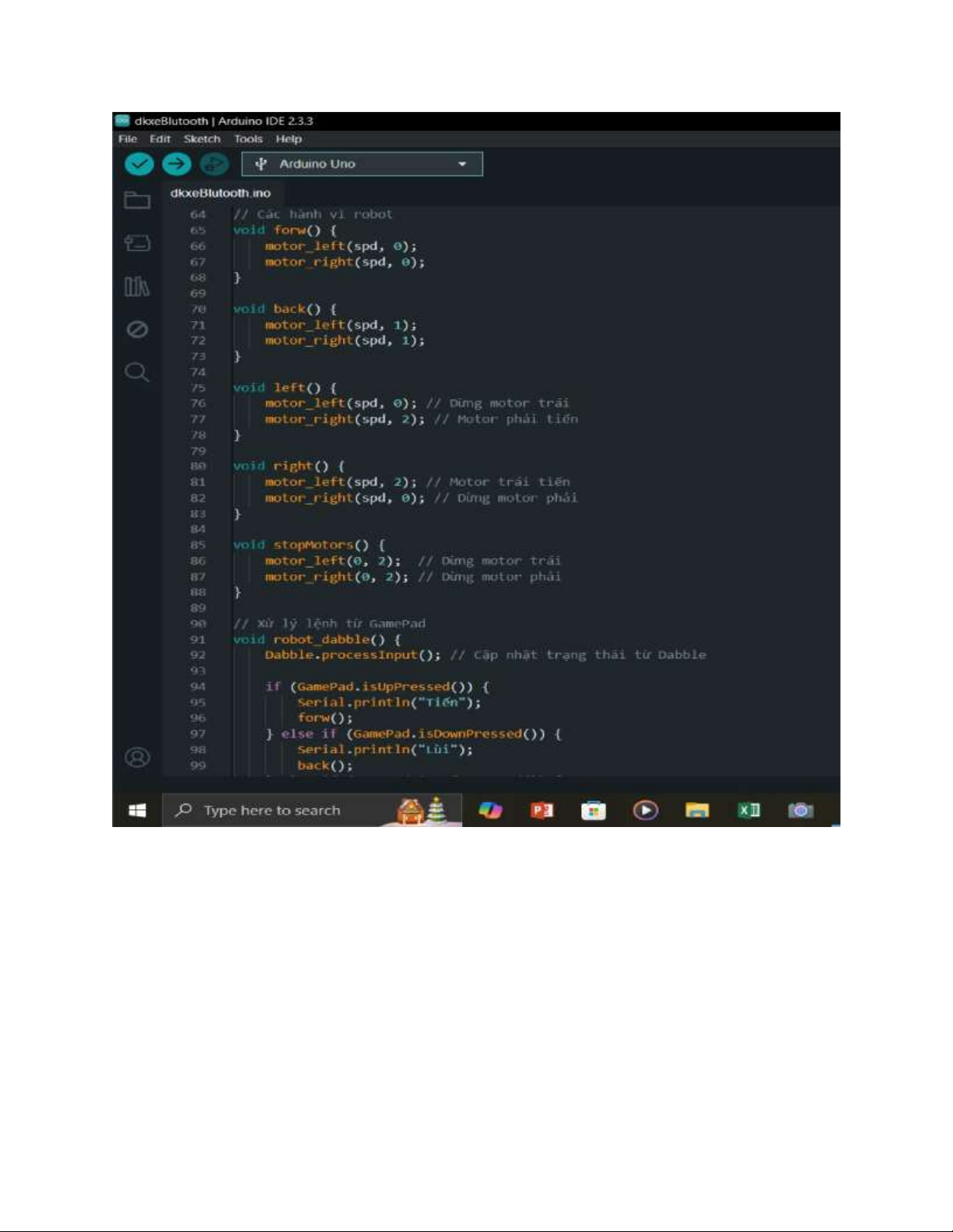 + Xử lý tín hiệu từ Bluetooth để xác định lệnh điều khiển (tiến,