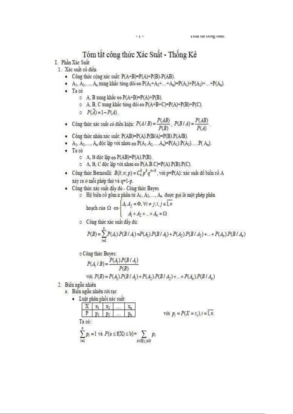 XSTK - Tóm Tắt Công Thức Xác Suất Thống Kê và Ứng Dụng. Môn Xác suất thống kê | Đại học Công nghệ Thành phố Hồ Chí Minh.