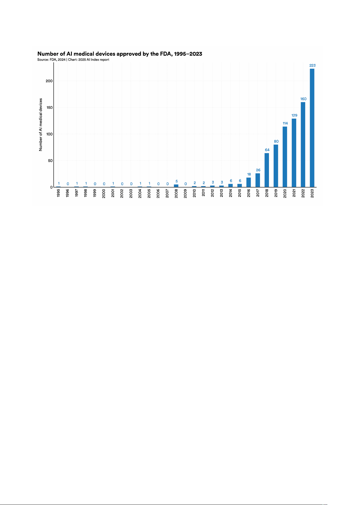 + VD: Năm 2023, FDA đã phê duyệt 223 thiết bị y tế tích hợp AI, tăng từ con số chỉ 6 thiết bị vào năm 2015.