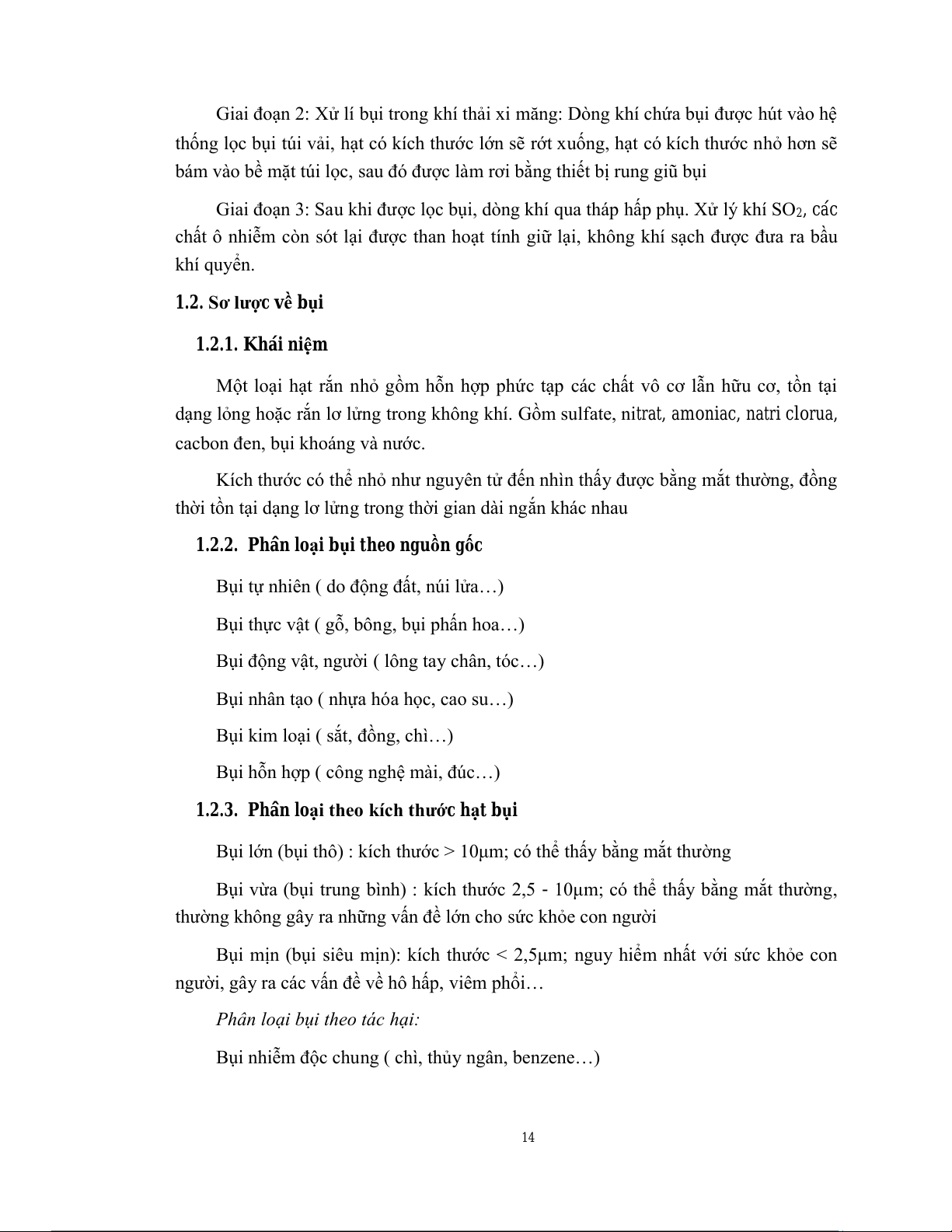 1.2.2. Phân loại bụi theo nguồn gốc . . . . . . . . . . . . . . . . . . . . . . . . . . . . . . . 14