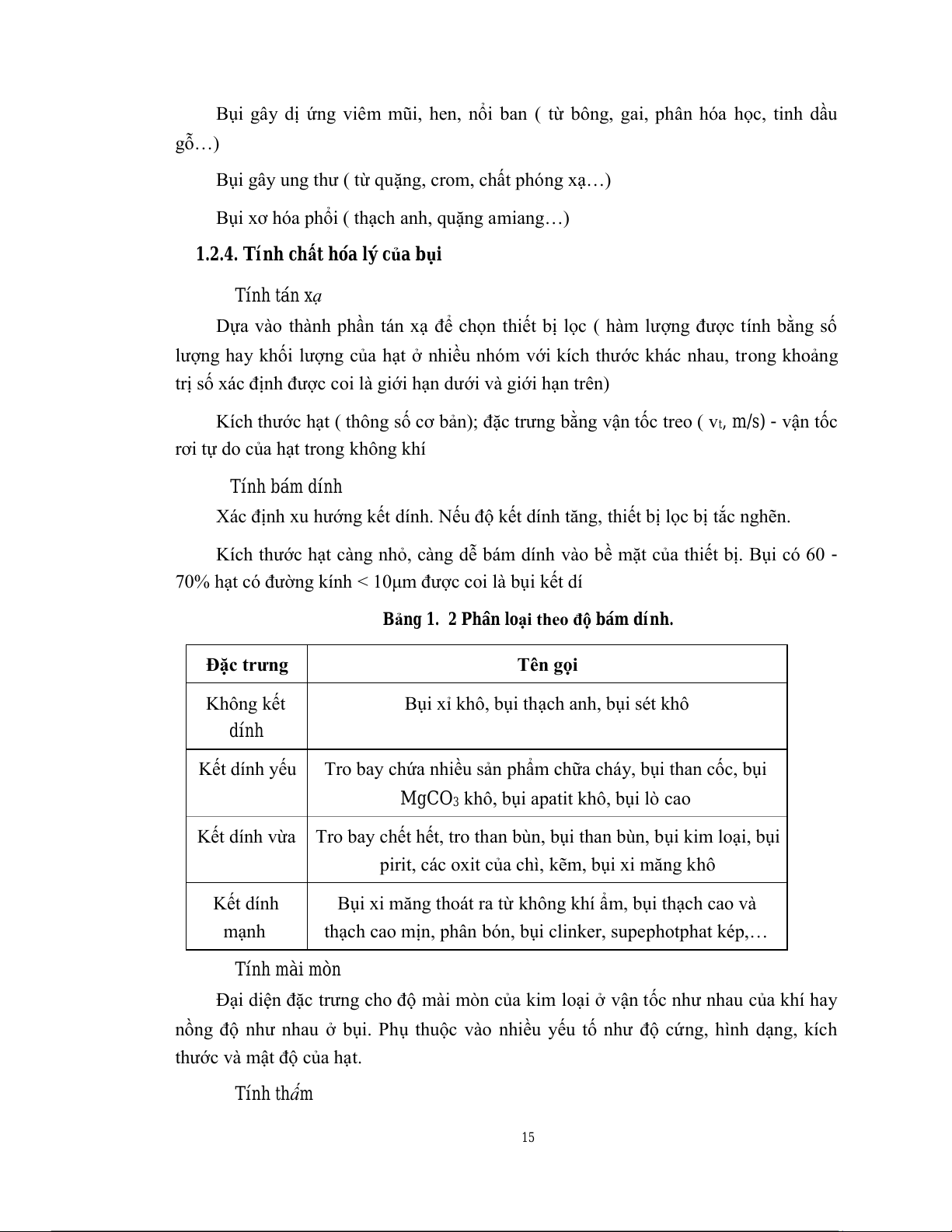 1.2.4. Tính chất hóa lý của bụi . . . . . . . . . . . . . . . . . . . . . . . . . . . . . . . . . . . 15