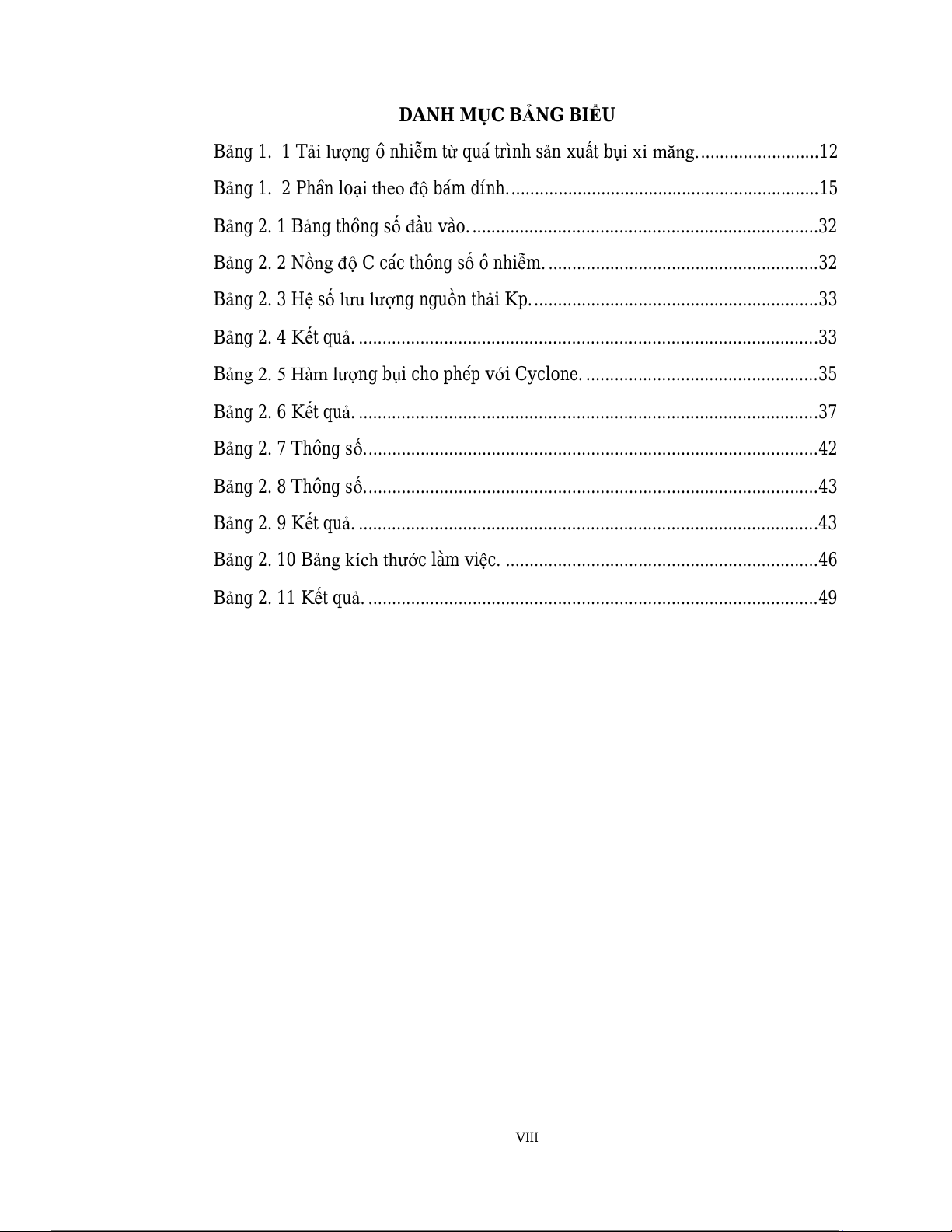 Bảng 2. 5 Hàm lượng bụi cho phép với Cyclone. . . . . . . . . . . . . . . . . . . . . . . . . . 35