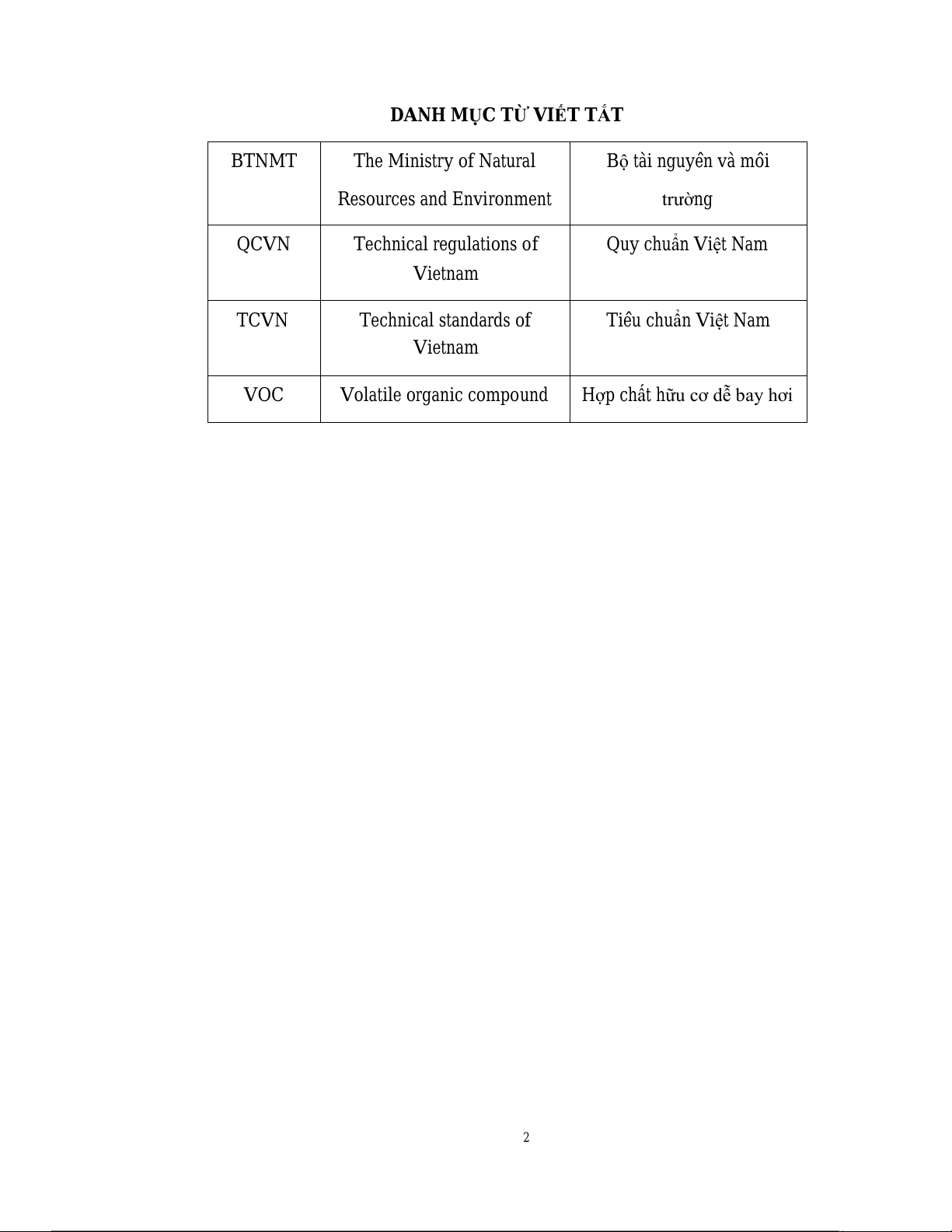 Bảng 2. 2 Nồng độ C các thông số ô nhiễm .. . . . . . . . . . . . . . . . . . . . . . . . . . . . . 32