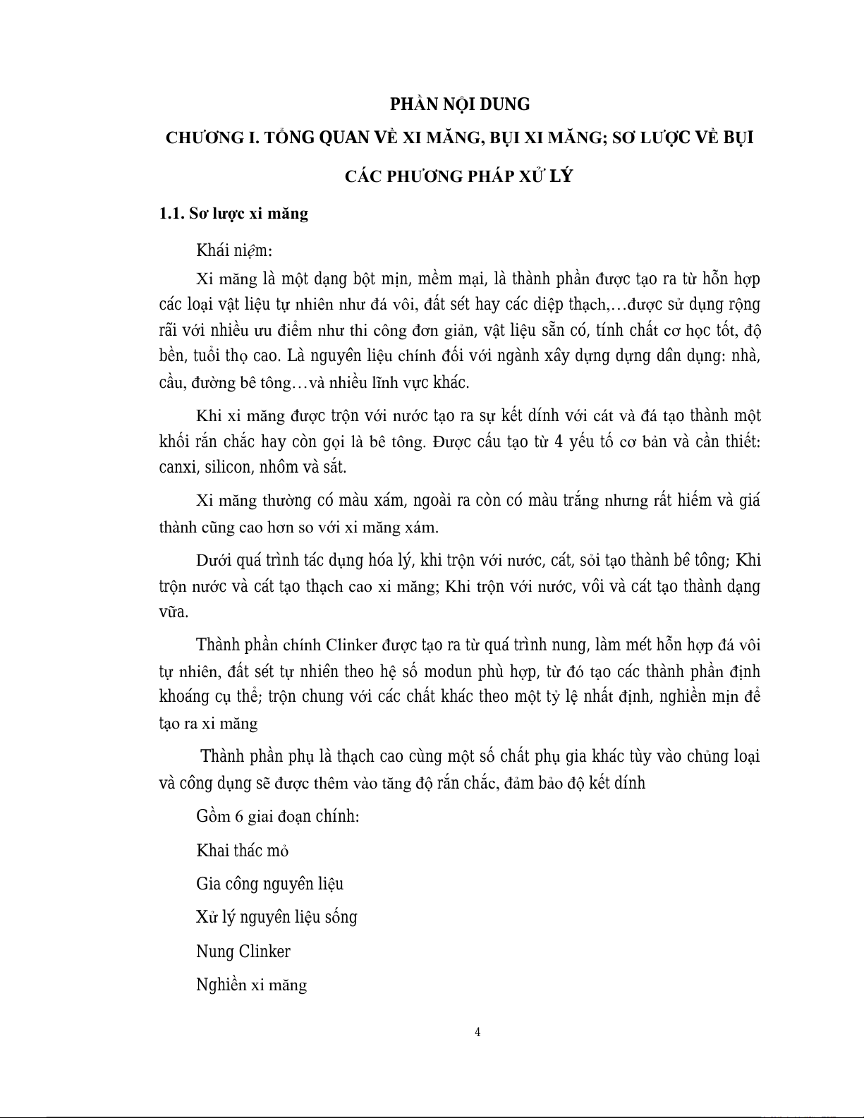 CHƯƠNG I. TỔNG QUAN VỀ XI MĂNG, BỤI XI MĂNG; SƠ LƯỢC VỀ BỤI 4