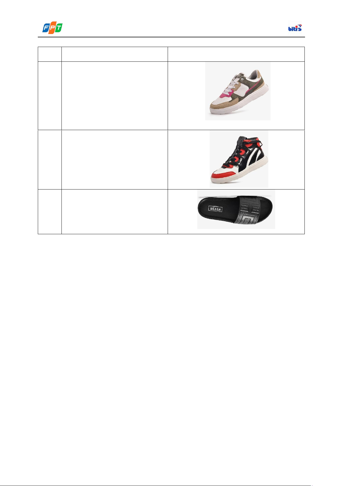 chuyên về sản xuất giày, dép. lOMoAR cPSD| 59452058 STT Tên sản phẩm Hình ảnh 1 Giày Thể Thao Nữ Biti's Hunter Street Còn Gì Dùng Đó 2 Giày Thể Thao Biti's Hunter Street x Vietmax: Faith Edition 3 Dép Nam Biti's