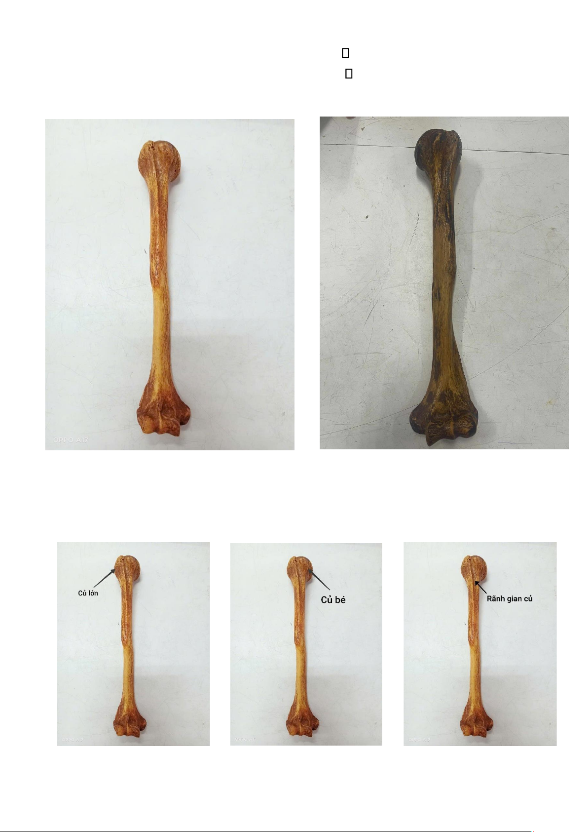 2. Xác định củ lớn, củ bé, rãnh gian củ, lồi cầu trong, lồi cầu ngoài, rãnh
