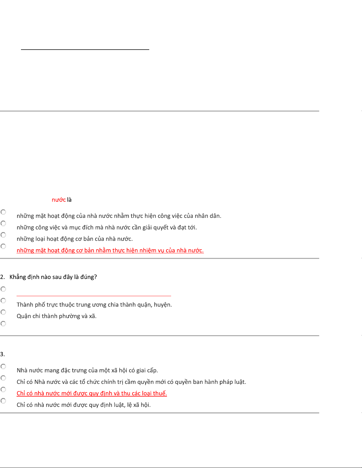 Tỉnh chia thành huyện, thành phố tỉnh thuộc tỉnh và thị xã.           Huyện chia thành xã.   Nhận định nào đúng?                    lOMoAR cPSD| 60692662
