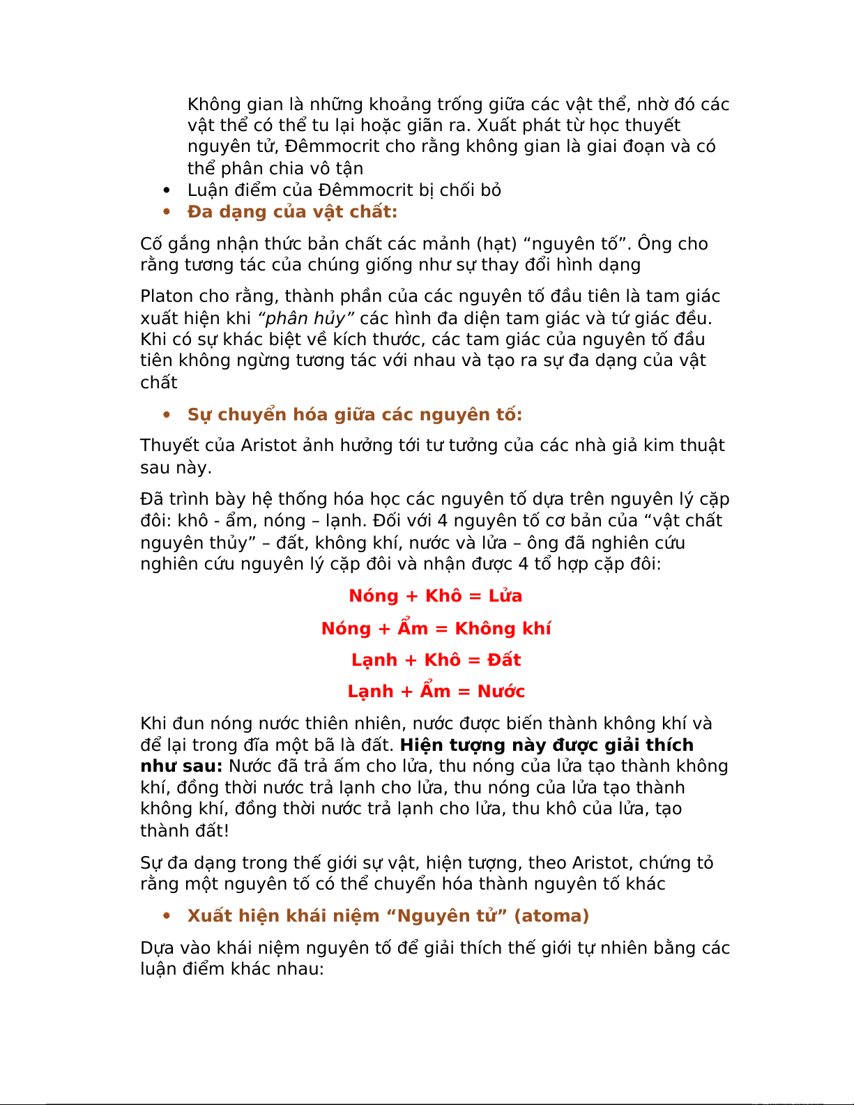 Thuyết của Aristot về sự chuyển hóa qua lại giữa các nguyên tố