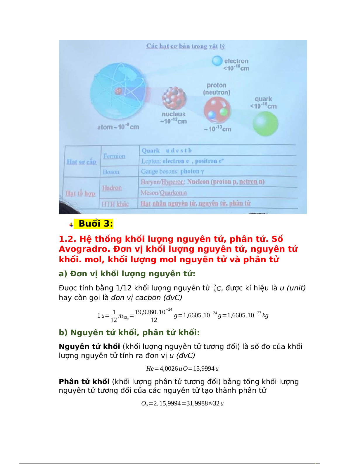 1.2. Hệ thống khối lượng nguyên tử, phân tử. Số