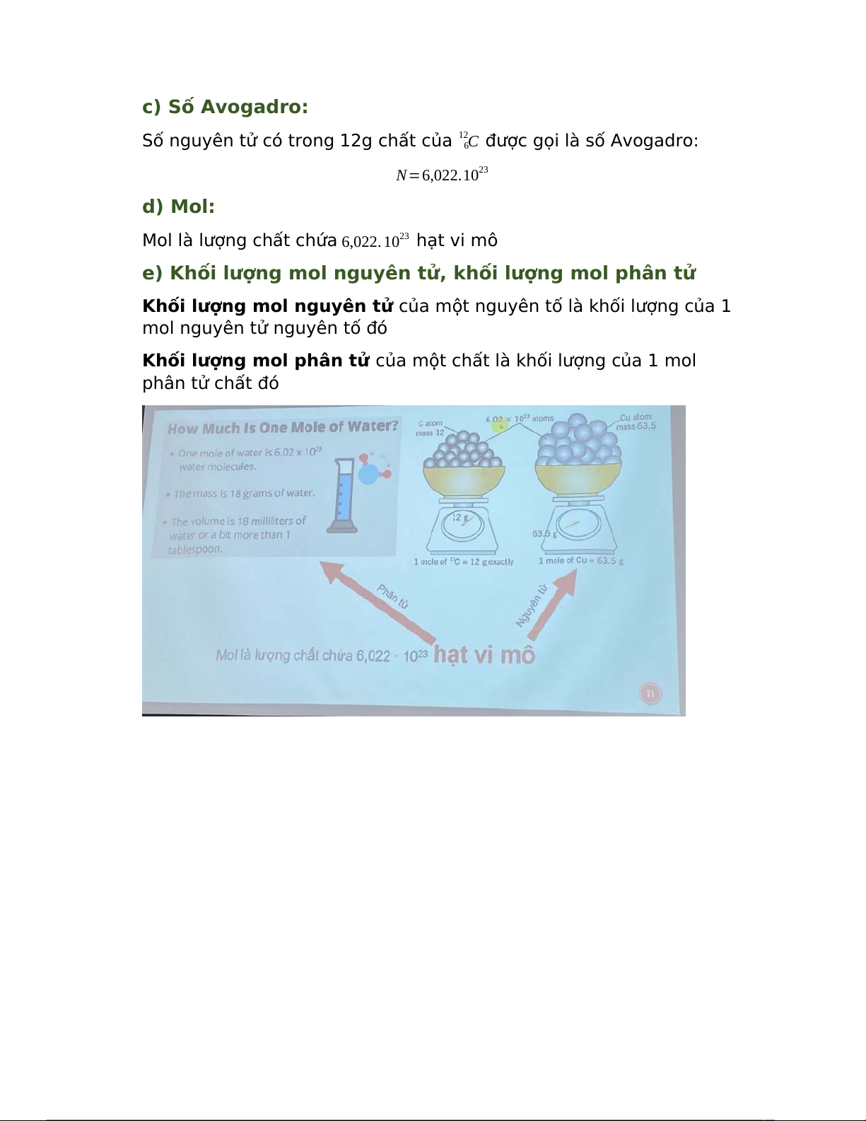 khối. mol, khối lượng mol nguyên tử và phân tử