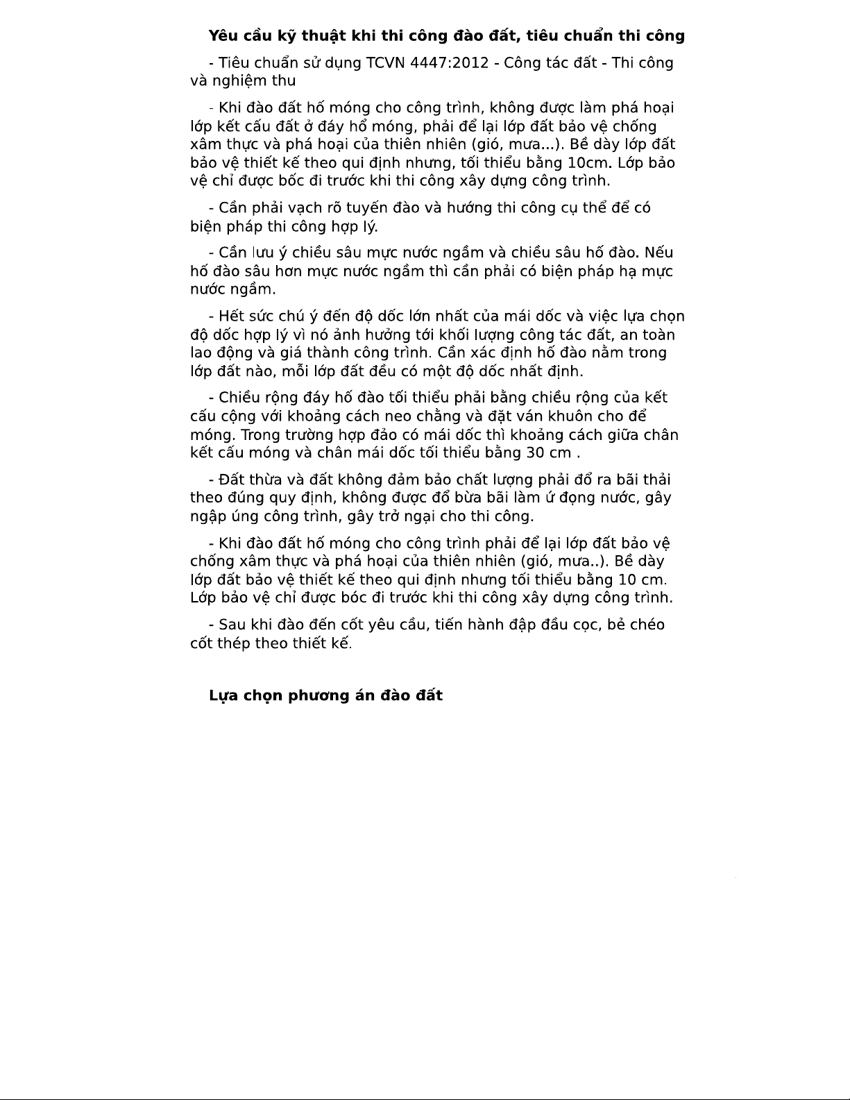 Yêu cầu kỹ thuật thi công đào đất - TCVN 4447:2012
