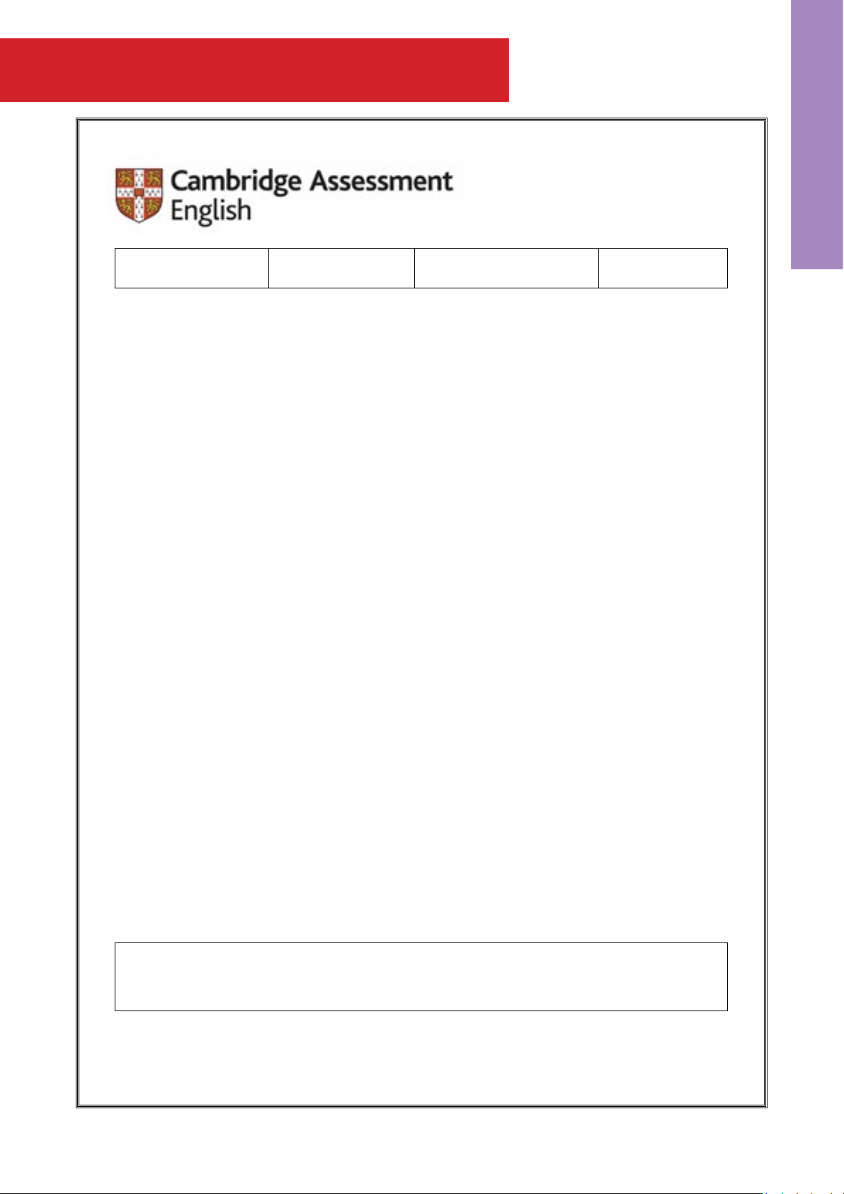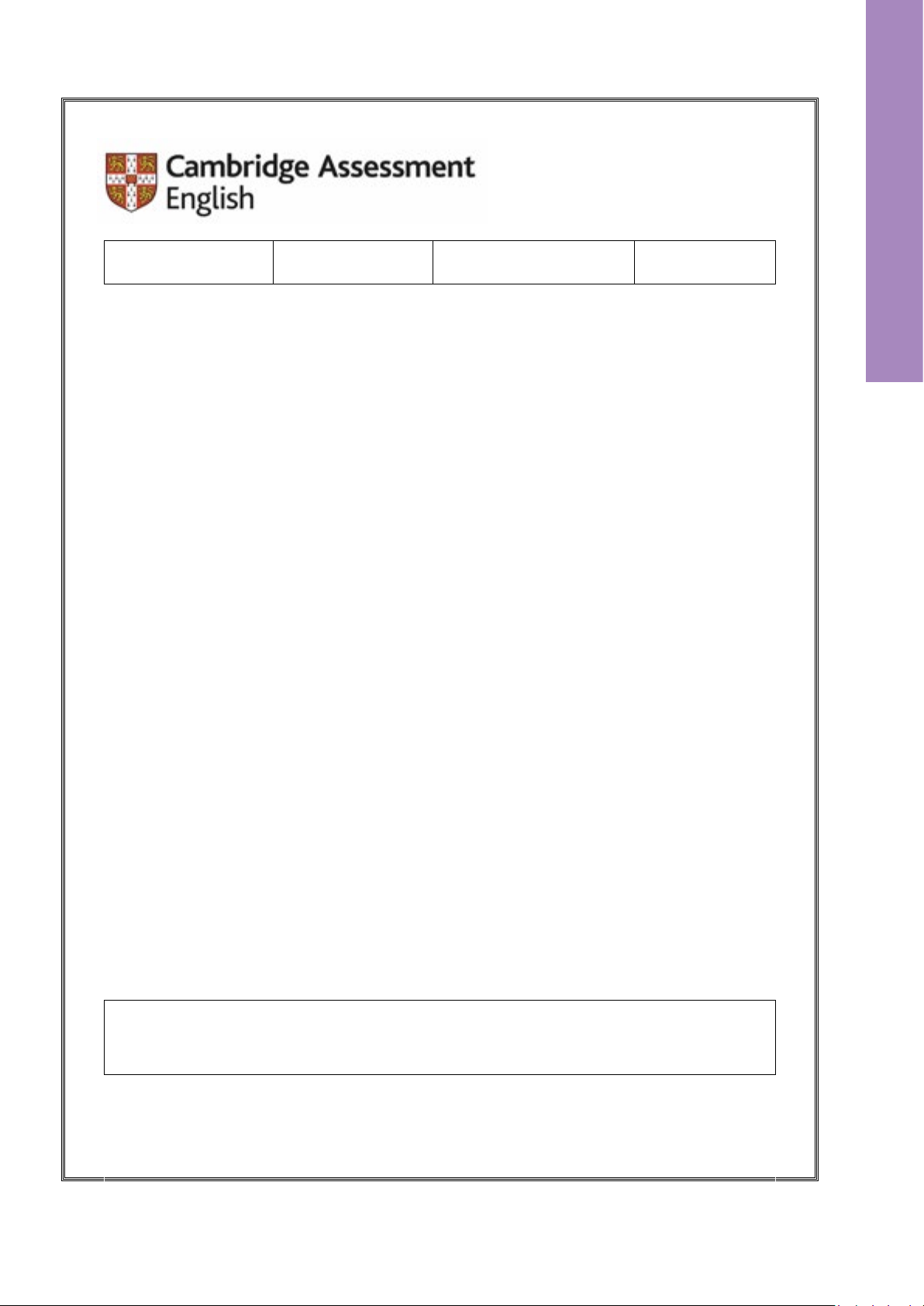 Would you like to colour it pink? Fch Yes! PAUSE 00’15” Pre A1 Starters 13 Blank page 14 Cambridge Assessment English riting and W Reading s Centre Number Candidate Number Starter e A1 Pr Pre A1 Starters Reading and Writing There are 25 questions. You have 20 minutes. You wil need a pen or pencil. My name is: