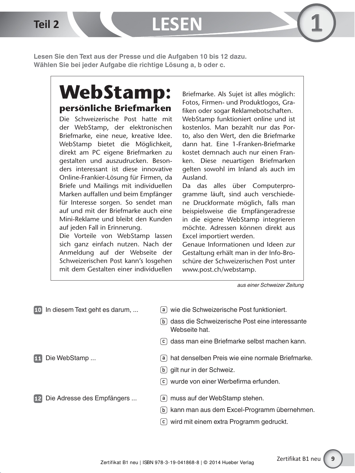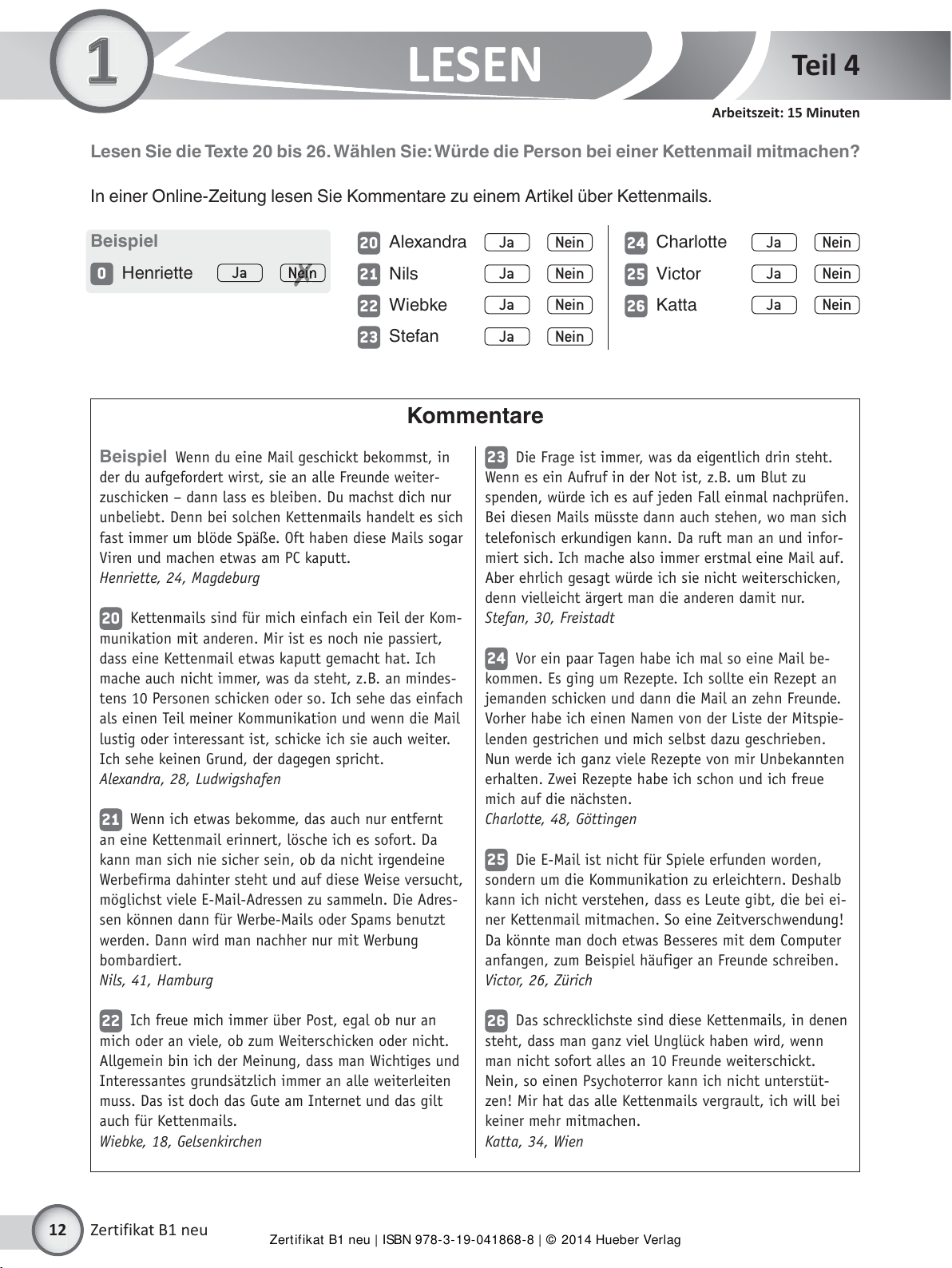 Zertifikat B1 neu | ISBN 978-3-19-041868-8 | © 2014 Hueber Verlag