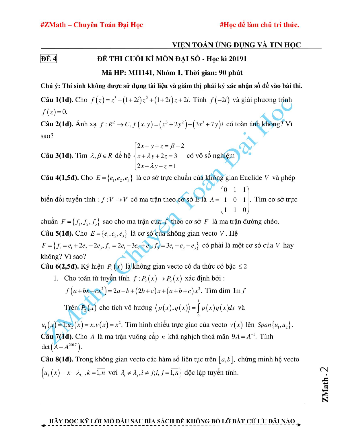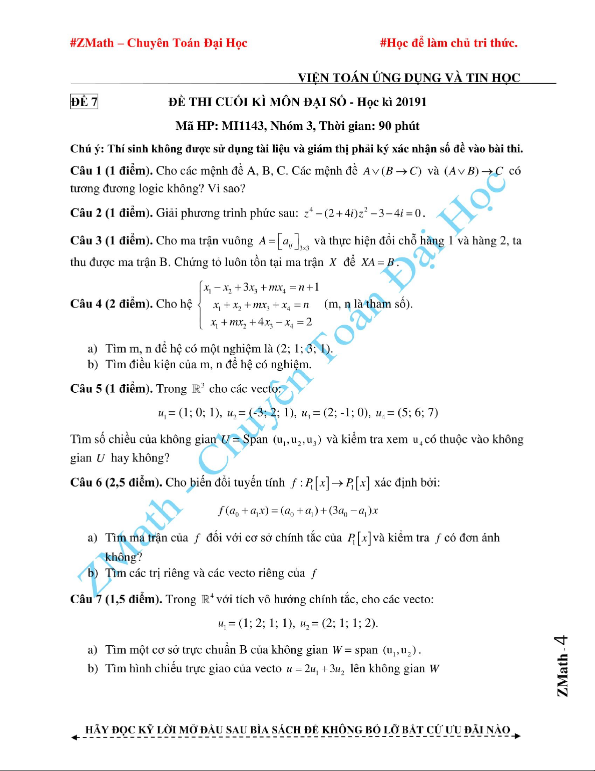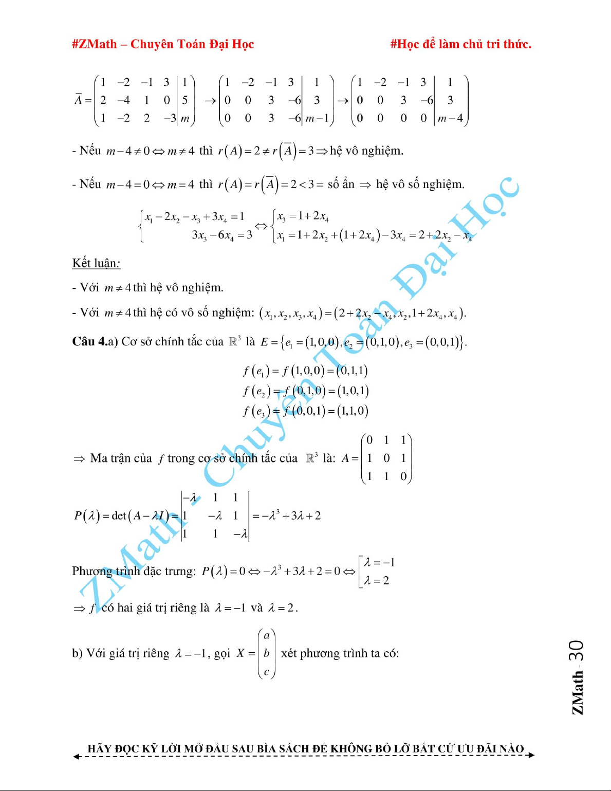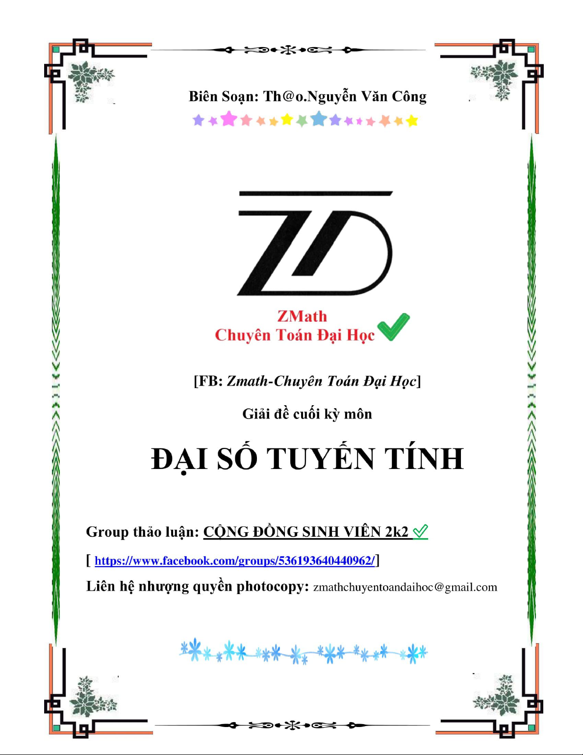 Giải đề cuối kỳ môn Đại số tuyến tính | Trường Đại học Kinh Tế Quốc Dân