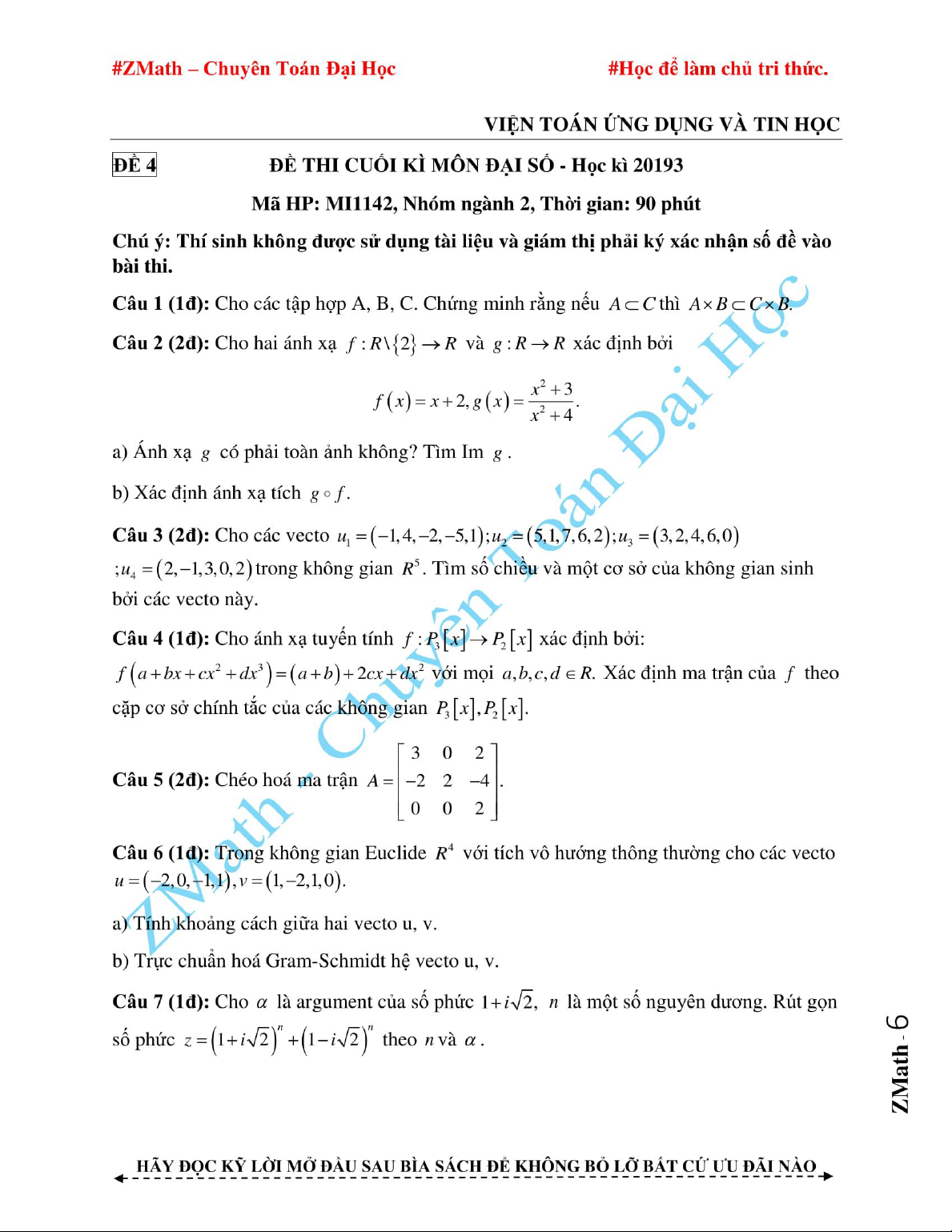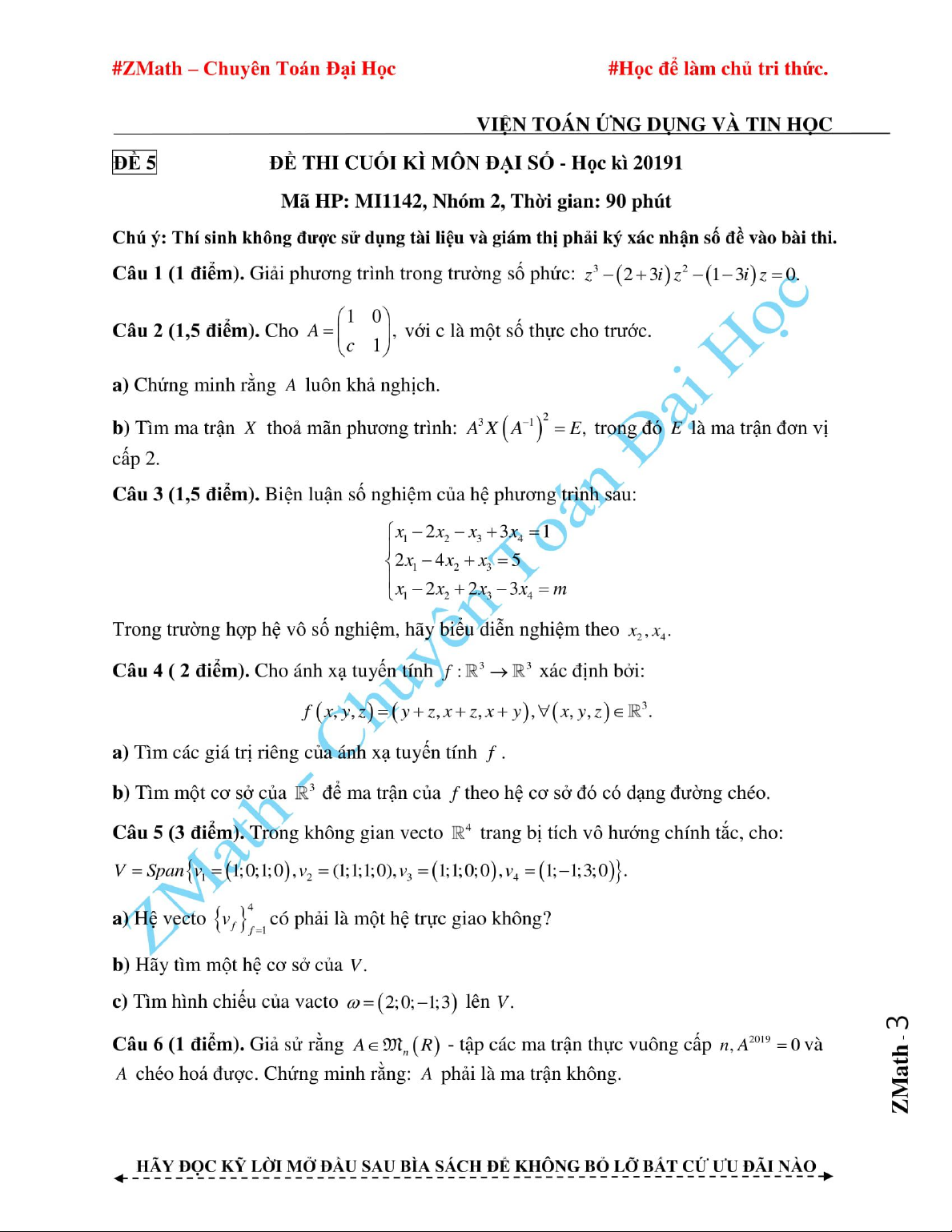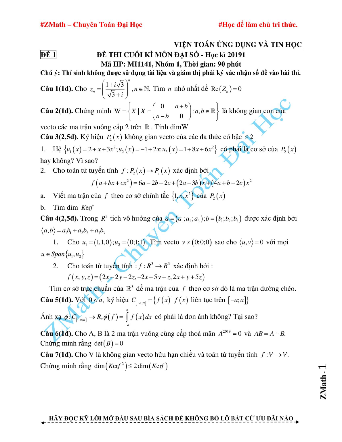 Giải đề cuối kỳ môn Đại số tuyến tính | Trường Đại học Kinh Tế Quốc Dân