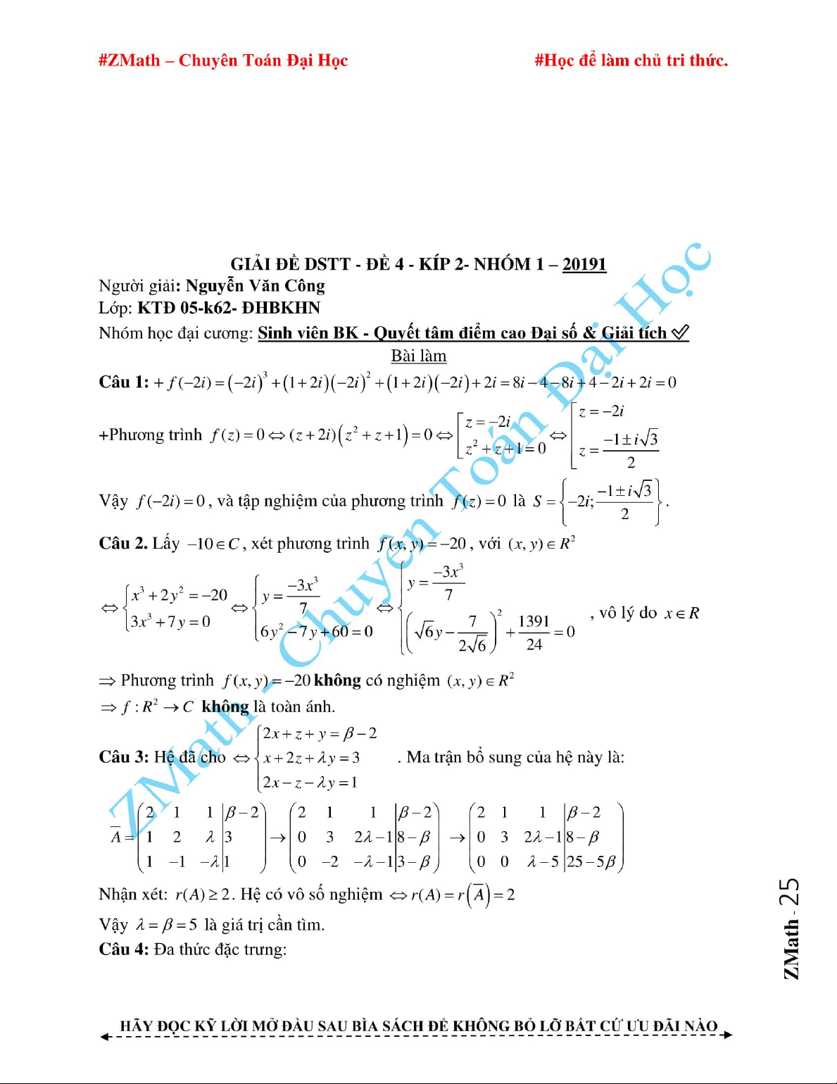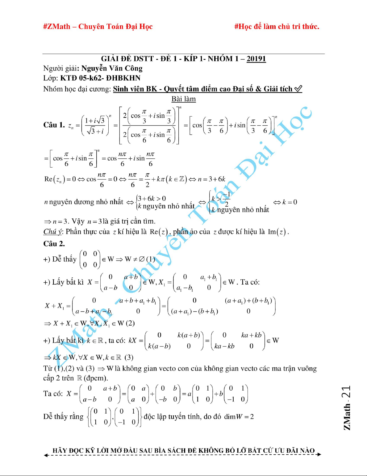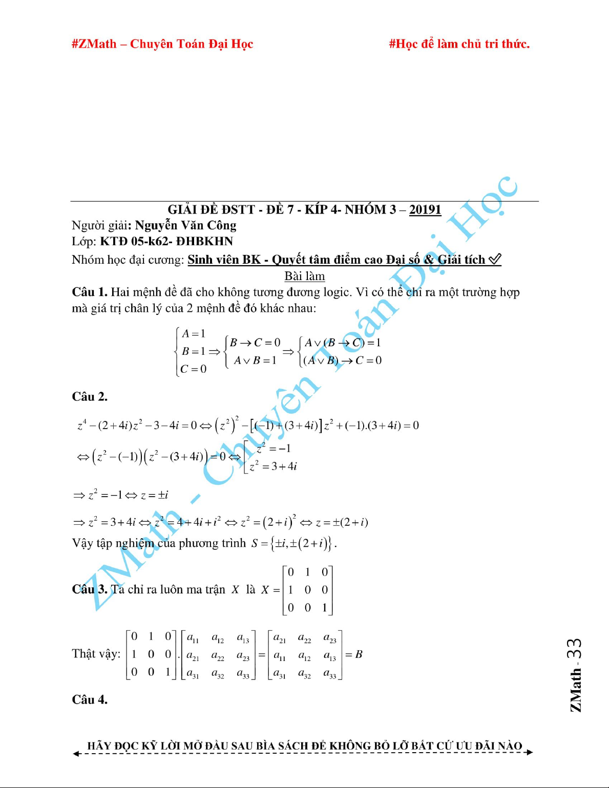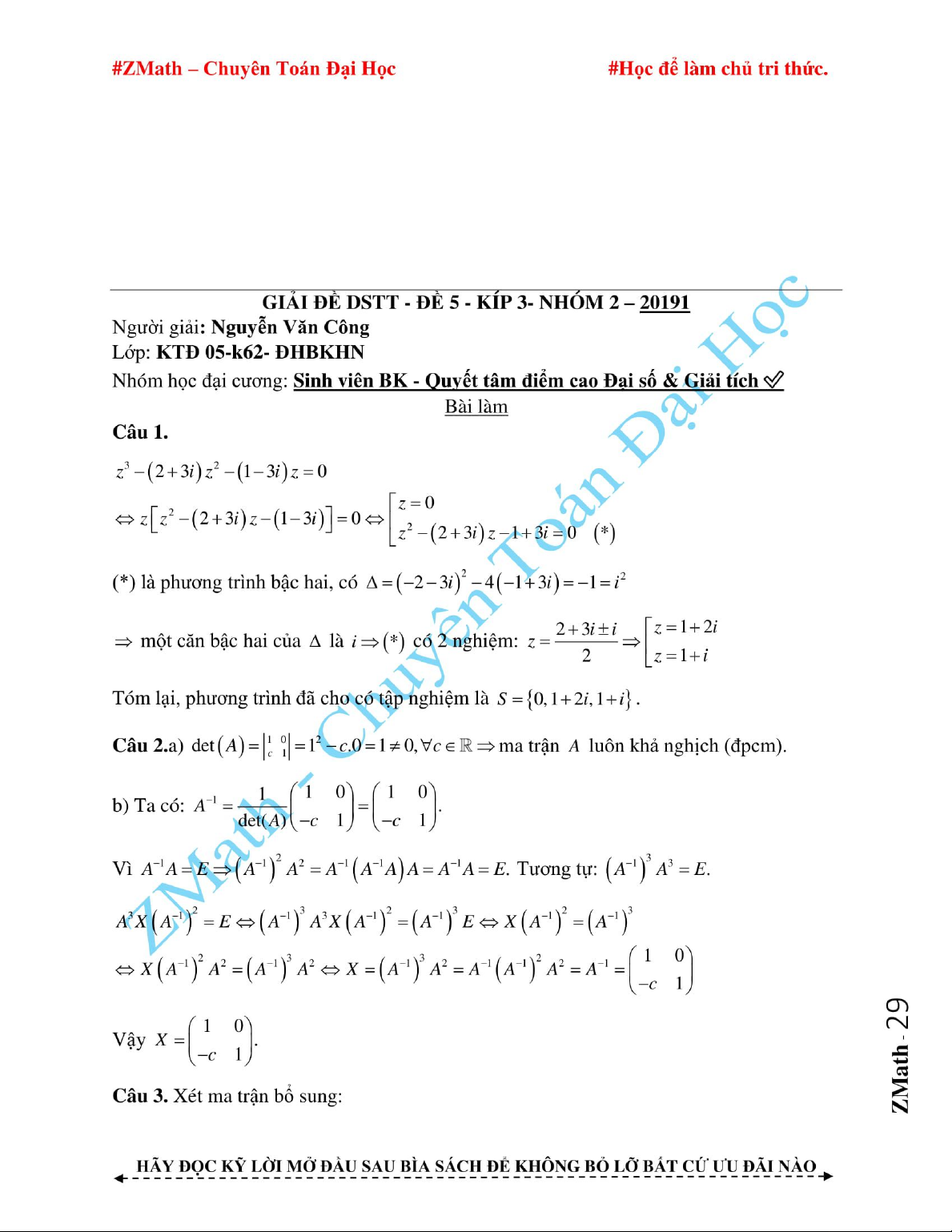 Giải đề cuối kỳ môn Đại số tuyến tính | Trường Đại học Kinh Tế Quốc Dân